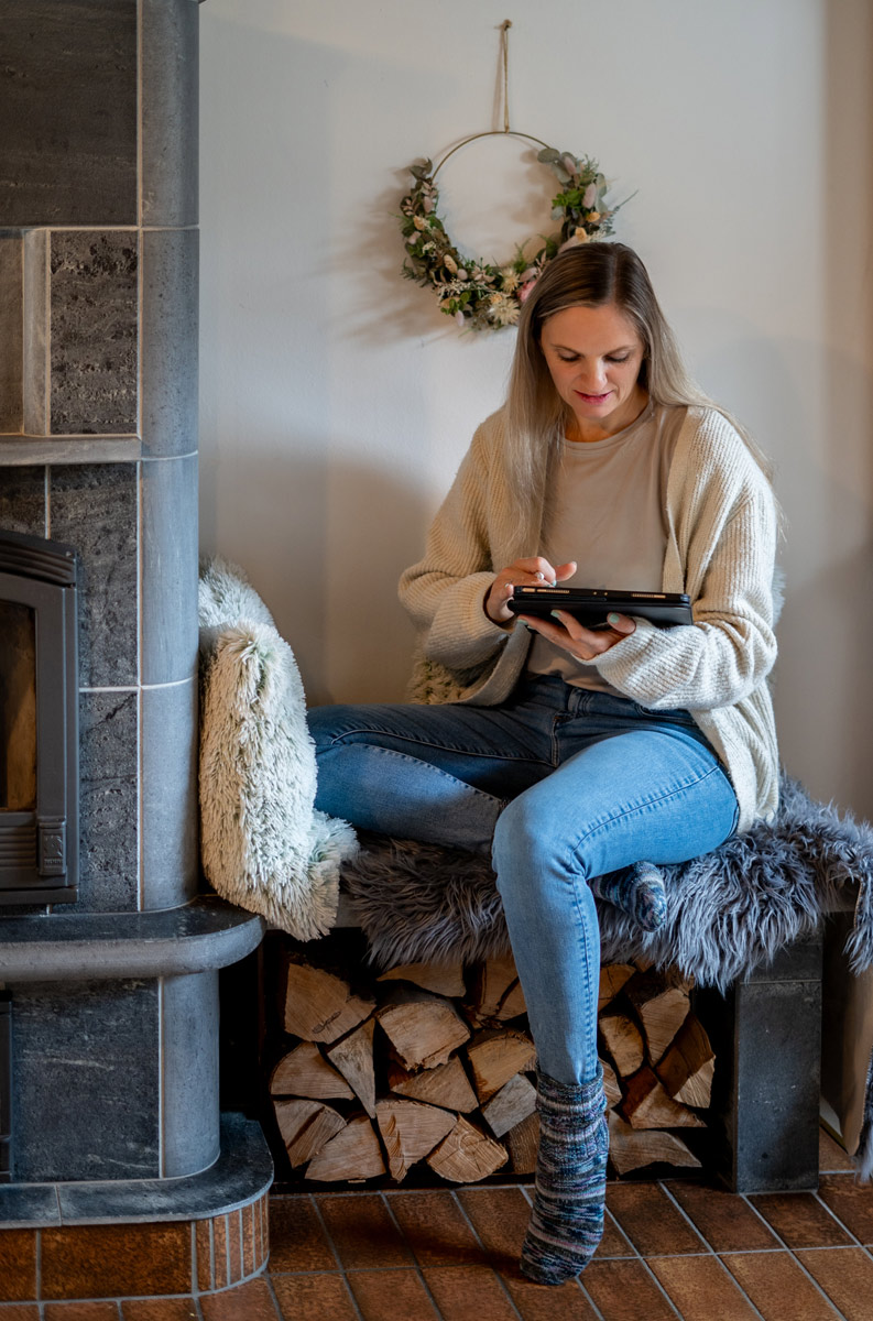 Neben deinem persönlichen Rückzugsort gibt es im Haus einen offenen Arbeitsbereich sowie das gemütliche Kaminzimmer. Hier kannst du bewusst den Tapetenwechsel suchen, wenn du nicht alleine arbeiten möchtest. Der Raum ist hell, ruhig und bietet genügend Platz, um konzentriert an deinem Projekt zu arbeiten.